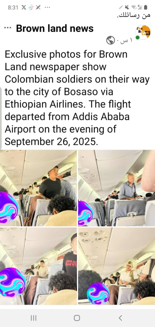 متابعات – نبض الوطن – تحصلت صحيفة براون لاند التي تصدر باللغة الإنجليزية على صور لجنود مرتزقة كولمبيين على متن الخطوط الجوية الأثيوبية في طريقهم الي مدينة بوصاصو .
