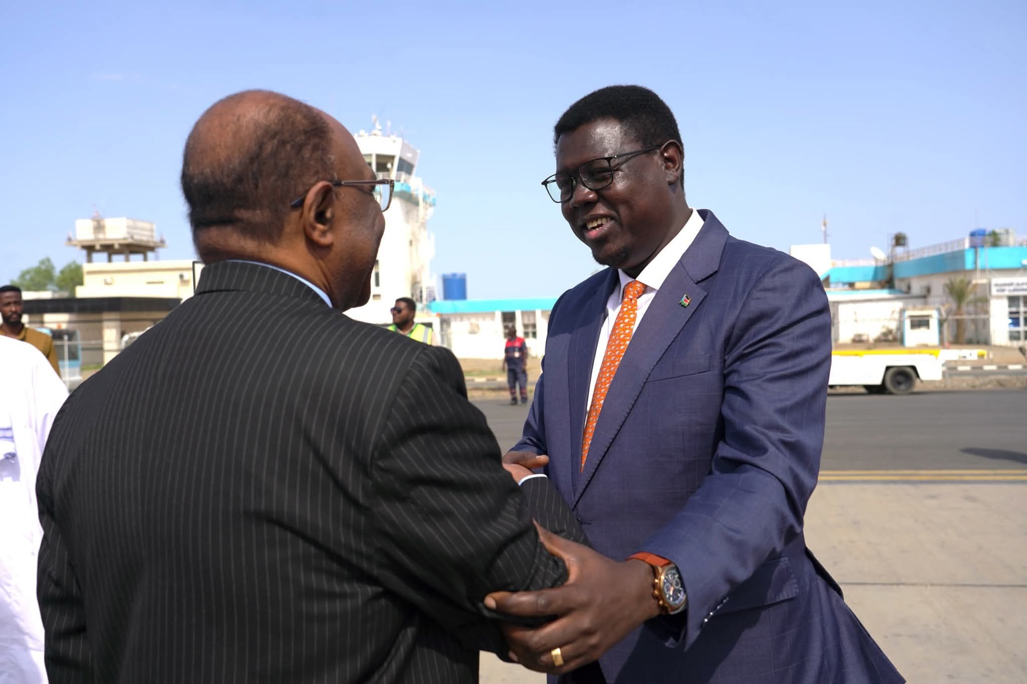 وكان في استقباله لدى وصوله مطار بورتسودان وزير الخارجية السفير محيي الدين سالم وعدد من مديري الإدارات بالوزارة، بجانب القائم بأعمال سفارة جنوب السودان.