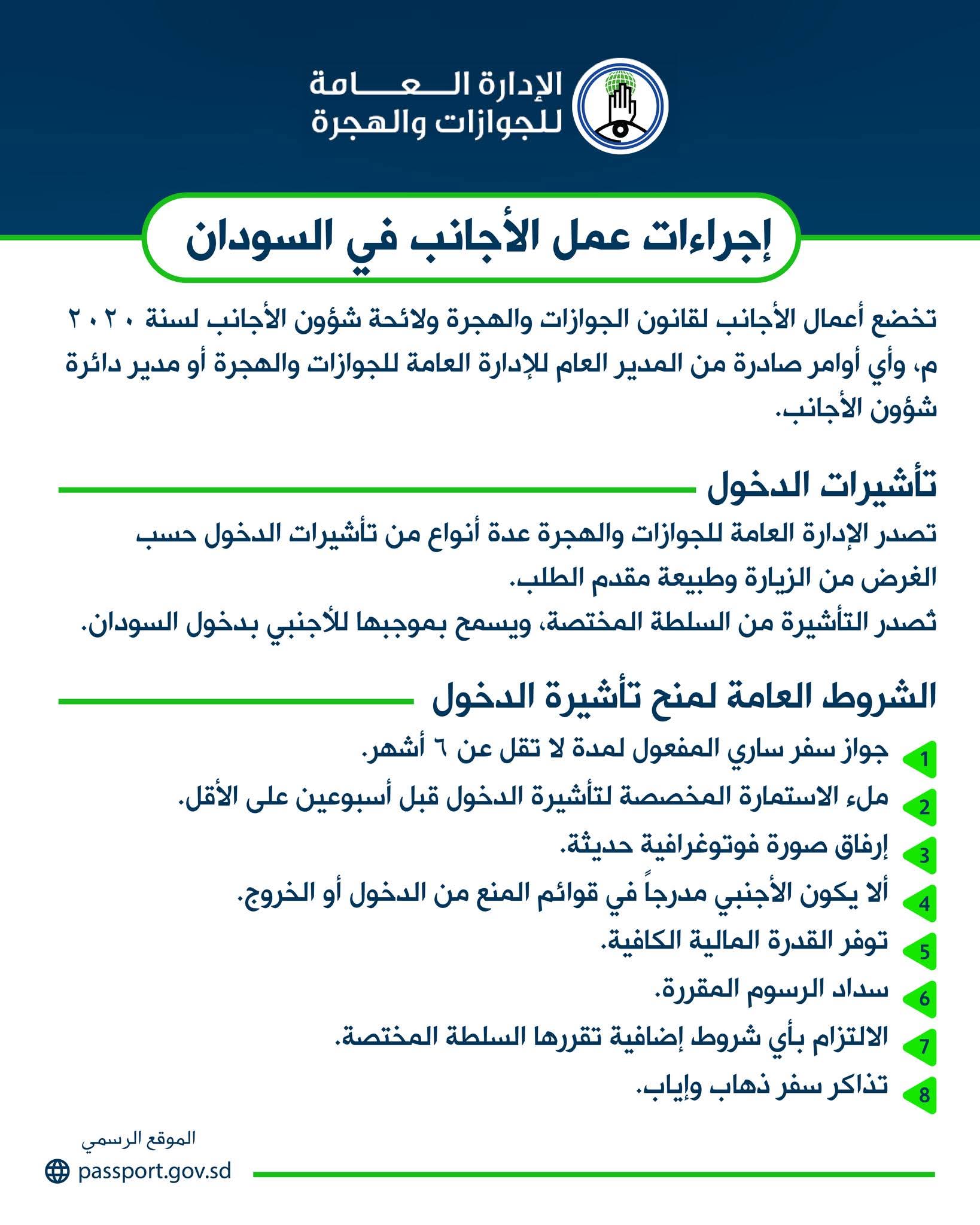 تُصدر التأشيرة من السلطة المختصة، ويسمح بموجبها للأجنبي بدخول السودان.